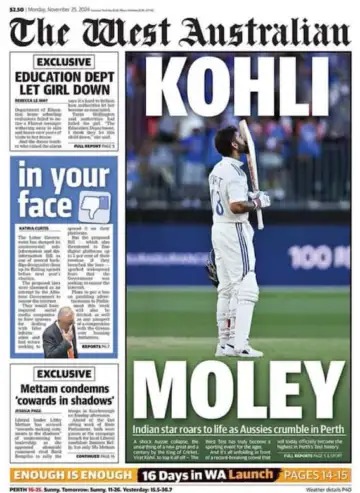 या मॅचनंतर दुसऱ्या दिवशी ऑस्ट्रेलियन मीडियाने हा मुद्दा उचलून धरत विराट कोहलीबद्दल आक्षेपार्ह मजकूर छापला आहे.