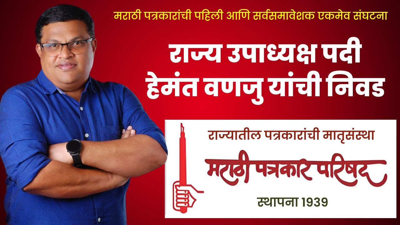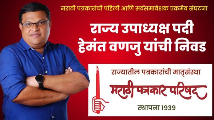 मुंबई : राज्यातील पत्रकारांची सर्वात मोठी आणि प्रमुख संघटना असणाऱ्या मराठी पत्रकार परिषदेच्या उपाध्यक्षांच्या नियुक्त्या आज जाहीर करण्यात आल्या. यामध्ये रत्नागिरी खबरदारचे संपादक हेमंत वणजु यांची मराठी पत्रकार परिषदेच्या राज्य उपाध्यक्ष पदी निवड करण्यात आली आहे. एस.एम.देशमुख, विश्वस्त किरण नाईक यांच्याकडून ही नियुक्ती जाहीर करण्यात आली आहे.