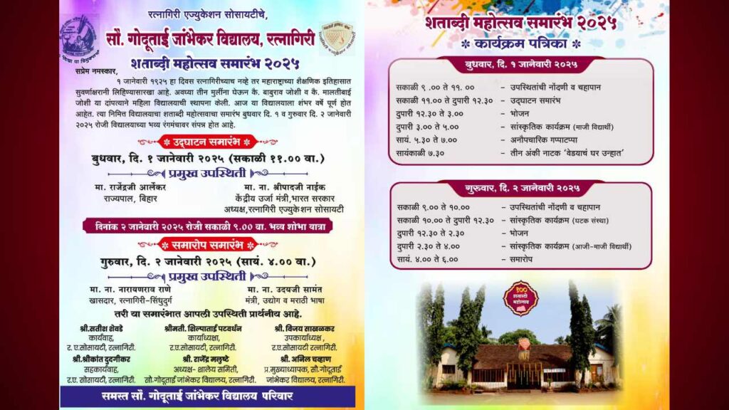 अवघ्या तीन मुलींना घेऊन कै. बाबुराव जोशी व कै. मालतीबाई जोशी या दांपत्याने महिला विद्यालयाची स्थापना केली. या विद्यालयाने शंभर वर्षांत रत्नागिरीच्या जवळच्या गावांतील विद्यार्थिनींना घडवले, शिकवले. शताब्दी महोत्सवाचे उद्घाटन उद्या सकाळी ११ वाजता केंद्रीय उर्जामंत्री तथा रत्नागिरी एज्युकेशन सोसायटीचे अध्यक्ष श्रीपाद नाईक यांच्या हस्ते होणार आहे. दुपारी ३ ते ५ या वेळेत माजी विद्यार्थ्यांचे सांस्कृतिक कार्यक्रम, ५.३० वाजता गप्पाटप्पा आणि सायंकाळी ७.३० वाजता वेड्याचं घर उन्हात हे नाटक सादर होणार आहे. २ जानेवारीला सकाळी शोभायात्रेचे आयोजन केले आहे. जयस्तंभ ते एसटी स्टॅंड, राम आळी, गोखले नाका, कॉंग्रेस भवनमार्गे परत शाळेत अशा या शोभायात्रेत घटकसंस्थेतील १००० विद्यार्थी, शिक्षक, कर्मचारी सहभागी होणार आहेत. दुपारी सांस्कृतिक कार्यक्रम होतील. सायंकाळी ४ वाजता माजी मुख्यमंत्री, खासदार नारायण राणे आणि राज्याचे उद्योग, मराठा भाषा मंत्री उदय सामंत प्रमुख उपस्थित राहणार आहेत. त्यांच्या उपस्थितीत महोत्सवाच्या सांगता होईल.