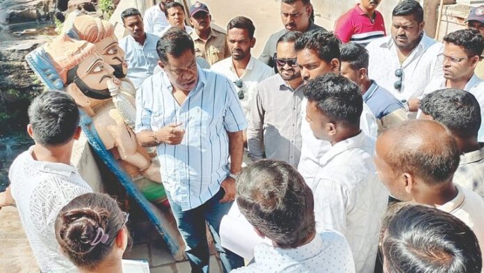 राजापूर : तालुक्याचे आराध्य दैवत असलेल्या श्री देव धूतपापेश्वर मंदिर आणि परिसराच्या सुशोभिकरणाच्या कामात अनेक त्रुटी असून, ग्रामस्थांना विश्वासात न घेता हे काम सुरू असल्याच्या तक्रारी येथील ग्रामस्थांनी आमदार किरण उर्फ भैया सामंत यांच्याकडे केल्यानंतर हे काम तत्काळ थांबविण्याच्या सूचना आ. सामंत यांनी दिल्या आहेत. तसेच याबाबत अधिकारी तसेच संबंधित ठेकेदार व ग्रामस्थांची संयुक्त बैठक घेऊन कामाचे नियोजन करण्यात येईल असेही आ. सामंत यांनी यावेळी सांगितले.