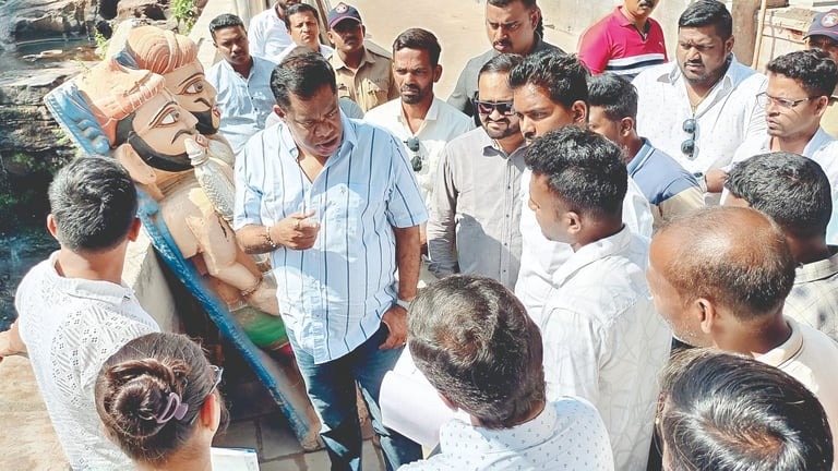 दरम्यान, श्री धूतपापेश्वर मंदिर आणि परिसर सुशोभिकरणाचे निम्म्यापेक्षा अधिक काम पूर्ण झाले आहे. मात्र, हे काम होत असताना ग्रामस्थांना विश्वासात घेतले जात नसल्याच्या तकारी सुरुवातीपासून होत होत्या. शिवाय या कामात अनेक त्रृटी असल्याचे देखील ग्रामस्थांचे म्हणणे आहे. या पार्श्वभूमीवर मंगळवारी धोपेश्वर ग्रामपंचायत येथे ग्रामस्थांशी संवाद साधण्यासाठी आलेल्या आमदार किरण सामंत यांनी श्री धूतपापेश्वर मंदिरात जात दर्शन घेतले तसेच मंदिराच्या कामाची पाहणी केली. यावेळी उपस्थित ग्रामस्थांनी मंदिर सुशोभिकरण कामामध्ये असलेल्या त्रुटी आ. सामंत यांच्या निदर्शनास आणून दिल्या.