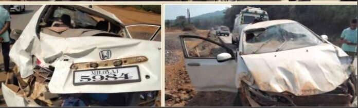 हा अपघात काल दुपारी झाला. शौकत बाबा मुल्लाजी (मूळ गाव चिखली, ता. संगमेश्वर, सध्या रा. रत्नागिरी) हे मोटार घेऊन चिखली येथून रत्नागिरीकडे जात होते. या गाडीत त्यांच्या बरोबर आफ्रिन मुबीन खाल्फे (वय ३३), हिजान मुवीन खाल्फे (१० वर्ष), अलमीरा मुबीन खाल्फे (१४, सर्व रा. रत्नागिरी, धनजीनाका), फिजा नजीब खांचे (२९), आफ्राज खांचे (६, सर्व रा. रत्नागिरी, शिवाजी नगर) हे प्रवास करत होते. संगमेश्वर येथून जवळच असलेल्या हॉटेल पुढे निढळेवाडी येथे आल्यावर चालक शौकत मुल्लाजी यांचे मोटारीवरील नियंत्रण सुटले आणि मोटार अर्धा ते एक फूट उंच असलेल्या रस्त्यावरून थेट कच्च्या रस्त्यावर उतरून खडीच्या ढिगाऱ्यांवर आदळली.