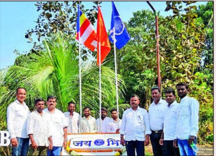 कडवई : शिव-फुले-शाहू-आंबेडकर विचारांवर चालणाऱ्या तरुणांनी एकत्र येऊन संगमेश्वर तालुक्यातील तांबेडी येथे जयभीम स्तंभ उभारला आहे. याच्या उद्घाटन सोहळ्याला वाशिष्टी प्रकल्पाचे अध्यक्ष प्रशांत यादव, माजी जिल्हा परिषद अध्यक्ष संतोष थेराडे, राजेंद्र ब्रीद, युवा नेतृत्व अजिंक्य ब्रीद, हेदली गावचे पोलीस पाटील नरेंद्र खानविलकर उपस्थित होते. यावेळी प्रशांत यादव यांनी सुरज सावंत, रुपेश तांबे, विनोद सावंत, अभिजित तांबे, सागर सावंत, सुदेश सावंत, सचिन गमरे, शुभम सावंत, अजय सावंत यांनी तांबेडी बौद्धवाडीच्या विकास कामांसाठी पुढाकार घेतला आहे. अशा तरुणांची समाजाला आणि गावाला गरज आहे असे मत व्यक्त केले. भव्य जयभीम स्तंभाला विनामूल्य जागा दिल्याबद्दल महेश खामकर यांचे विशेष आभार मानण्यात आले. या कार्यक्रमाला गावातील ग्रामस्थ मंडळी आणि प्रशिक सेवा संघ तांबेडी या संघटनेचे कार्यकर्ते आणि सभासद उपस्थित होते.