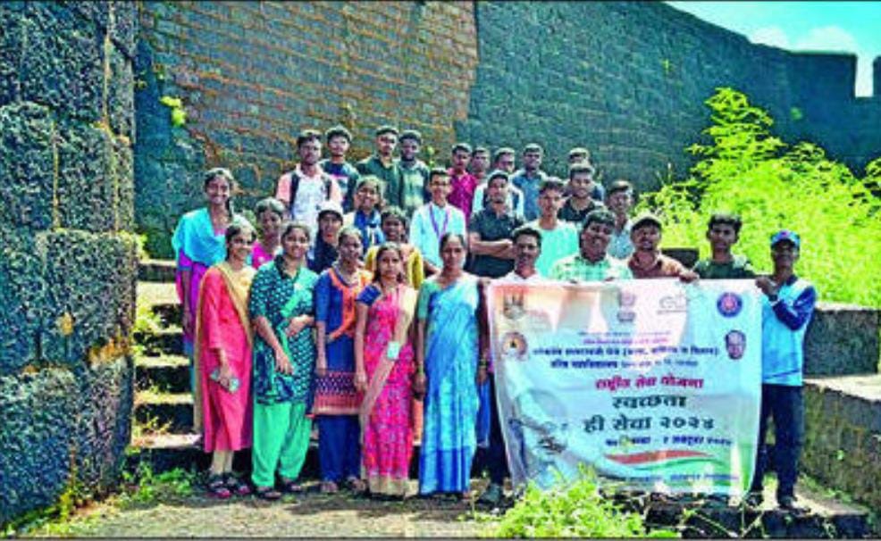रत्नागिरी : तालुक्यातील श्रमिक किसान सेवा समिती रत्नागिरी संचालित, लोकनेते शामरावजी पेजे कला, वाणिज्य व विज्ञान महाविद्यालय अंतर्गत राष्ट्रीय सेवा योजना विभाग व नेचर क्लब यांच्या संयुक्त विद्यमाने, राष्ट्रीय सेवा योजना विभागाचे स्वयंसेवक व महाविद्यालयातील विद्यार्थ्यांनी स्वच्छता ही सेवा या उपक्रमांतर्गत स्वच्छ सागर अभियानांतर्गत गावखडी समुद्र किनाऱ्याची साफसफाई करण्यात आली. या अभियानामध्ये गावखडी ग्रामपंचायत सरपंच गौतम पाटील, सर्व ग्रामपंचायत सदस्य, ग्रामसेवक, कर्मचारी, ग्रामस्थ, बचत गटातील महिला सदस्या सहभागी झाले होते. या अभियानांतर्गत पूर्णगड किल्ला येथे जाऊन ही स्वयंसेवकांनी साफसफाई केली.