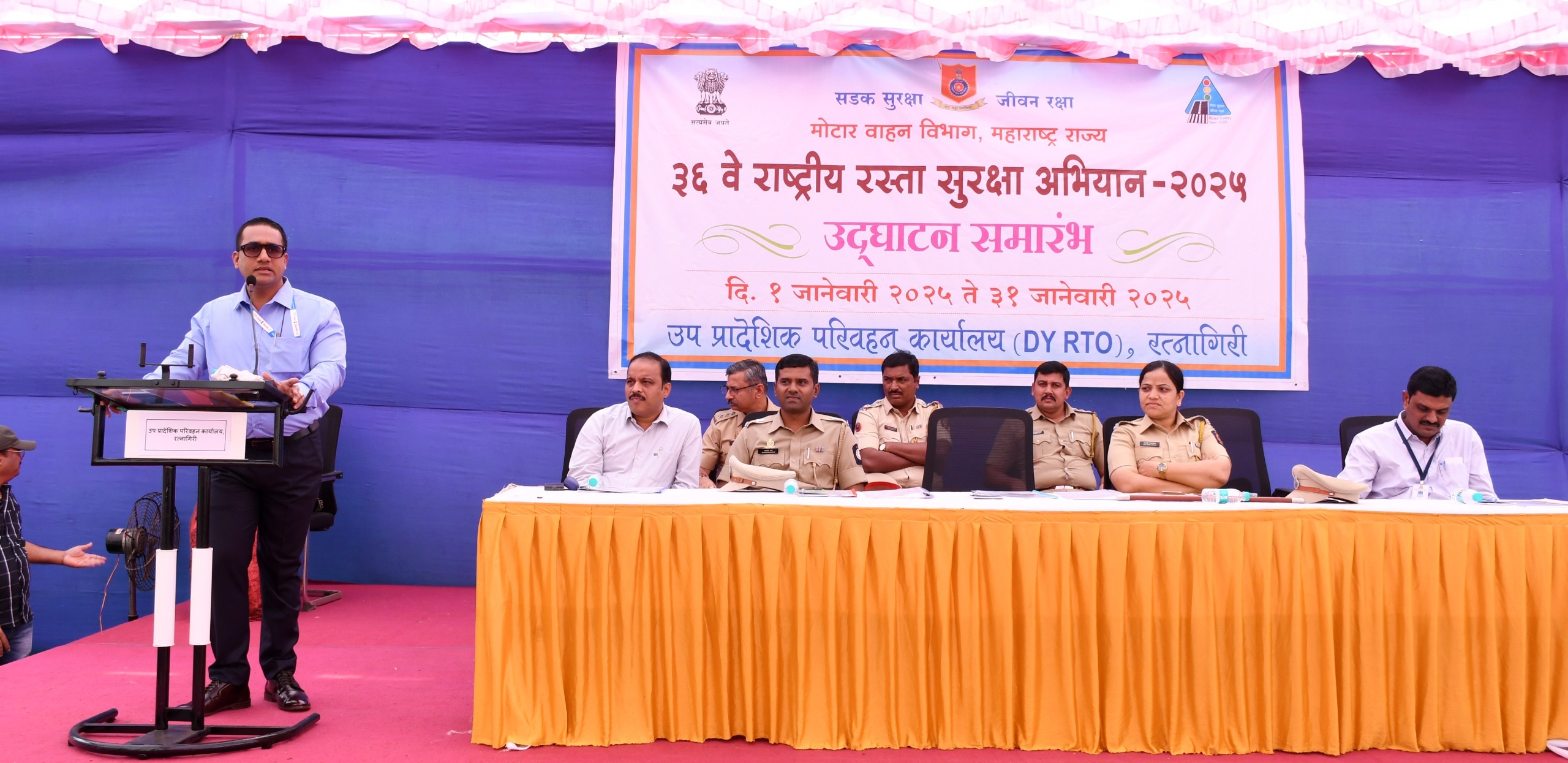 36 व्या राष्ट्रीय रस्ता सुरक्षा अभियानाचे उद्घाटन आज झाले त्यावेळी ते बोलत होते. कार्यक्रमास अपर पोलीस अधिक्षक जयश्री गायकवाड, उप प्रादेशिक परिवहन अधिकारी राजवर्धन करपे, सहायक उप प्रादेशिक परिवहन अधिकारी अजित ताम्हणकर, जिल्हा रस्ता सुरक्षा समितीचे सदस्य सचिव तथा कार्यकारी अभियंता अमोल ओटवणेकर, विभाग नियंत्रक प्रज्ञेश बोरसे, वाहतूक नियंत्रण शाखेचे सहायक पोलीस निरीक्षक आबासाहेब पाटील, सहायक पोलीस निरीक्षक विक्रम पाटील आदी उपस्थित होते.