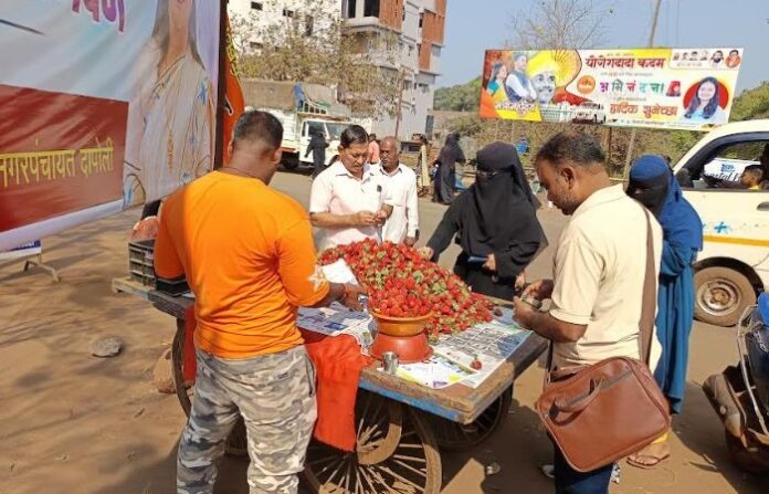 दापोली : थंडीच्या हंगामाची सुरुवात झाली की विशेषतः स्ट्रॉबेरी बाजारात येते. महाबळेश्वर येथील प्रसिद्ध स्ट्रॉबेरी दापोलीतील फळविक्रेते विक्रीसाठी आणत आहेत. यंदा दापोली बाजारपेठेत स्ट्रॉबेरी उशाराने दाखल झाली आहे.