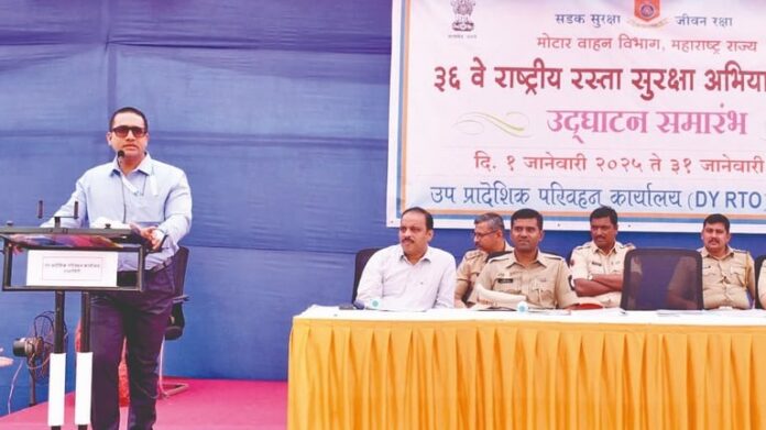 36 व्या राष्ट्रीय रस्ता सुरक्षा अभियानाचे उद्घाटन बुधवारी झाले. यावेळी ते बोलत होते. या कार्यक्रमास अप्पर पोलीस अधीक्षक जयश्री गायकवाड, उप प्रादेशिक परिवहन अधिकारी राजवर्धन करपे, सहायक उप प्रादेशिक परिवहन अधिकारी अजित ताम्हणकर, जिल्हा रस्ता सुरक्षा समितीचे सदस्य सचिव तथा कार्यकारी अभियंता अमोल ओटवणेकर, विभाग नियंत्रक प्रज्ञेश बोरसे, वाहतूक नियंत्रण शाखेचे सहायक पोलीस निरीक्षक आबासाहेब पाटील, सहायक पोलीस निरीक्षक विक्रम पाटील आदी उपस्थित होते.