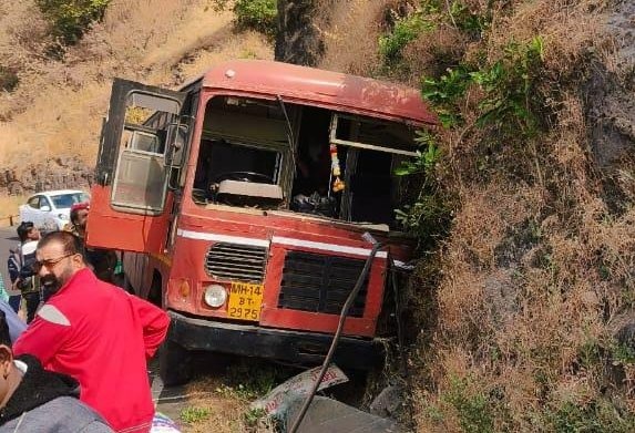 पाचल : सांगलीहून राजापूरच्या दिशेने याणाऱ्या बसला अणुस्कुरा घाटात आज सोमवारी सकाळी 10.30 वाजता ब्रेक फेल झाल्यामुळे अपघात झाला. मात्र यावेळी चालक एस. आर कुर्णे यांनी प्रसंगावधान राखत गाडी डोंगराच्या दिशेने घातल्याने मोठा अपघात टळला. त्यांच्या खबरदारीमुळे 50 प्रवाशांचा जीव वाचला. अन्यथा गाडी दरीत कोसळून मोठी जीवितहानी झाली असती. या बसमध्ये जवळपास 50 प्रवासी होते.