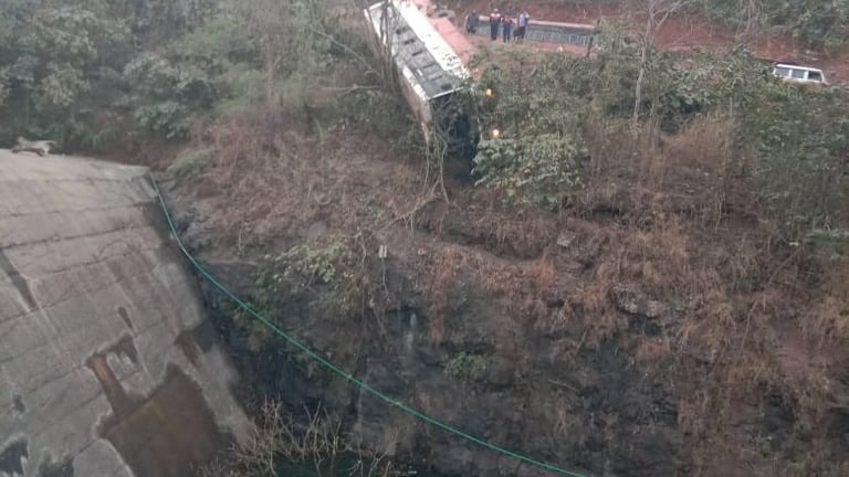 मंडणगड : दाभोळवरून मुंबईकडे जाणारी दापोली आगाराची बस चालकाचा ताबा सुटल्याने शेनाळे घाटातील चिंचाळी धरणाजवळ असलेल्या एका वळणा नजीक असलेल्या दरीत कोसळली. बस सुमारे पंधरा फूट खाली दरीत गेल्यानंतर एका झाडाला व दगडाच्या आधाराने बस अडकून राहिली. त्यामुळे दरीत असलेल्या धरणाच्या पाण्यात पडून होणारा मोठा अनर्थ टळला. ही घटना रविवारी रात्री मध्यरात्री घडली.