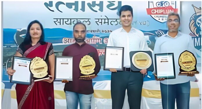 चिपळूण : शहरातील माधव सभागृहात रत्नसिंधू सायकल संमेलन पार पडले. या संमेलनात जिल्ह्यातील सायकलस्वारांसह मुंबई, कोकण आणि पश्चिम महाराष्ट्रातील १५० सायकलस्वारांनी सहभाग दर्शवला. यंदाचा प्रतिष्ठेचा ‘सायकल गौरव पुरस्कार’ रत्नागिरी सायकलिस्ट क्लबचे सायकलिस्ट अमित कवितके यांना त्यांच्या सायकलिंगमधील उल्लेखनीय कामगिरीबद्दल प्रदान करण्यात आला.