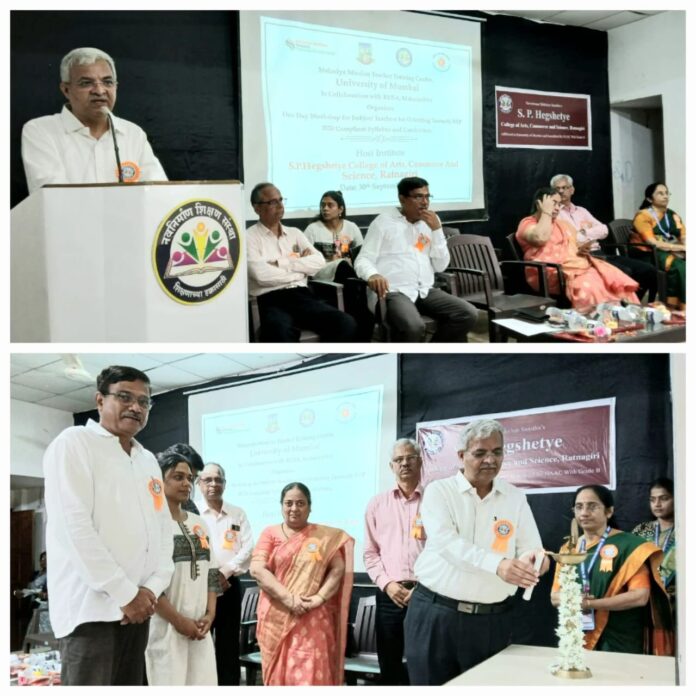 रत्नागिरी : नवीन शैक्षणिक धोरणानुसार मुंबई विद्यापीठातर्फे येथील नवनिर्माण शिक्षण संस्था संचलित एस. पी. हेगशेट्ये महाविद्यालयात आज वाणिज्य शाखेसाठी एकदिवसीय कार्यशाळा पार पडली. यात रत्नागिरी आणि सिंधुदुर्ग जिल्ह्यांतील वरिष्ठ महाविद्यालयांतील प्राध्यापक सहभागी झाले होते.