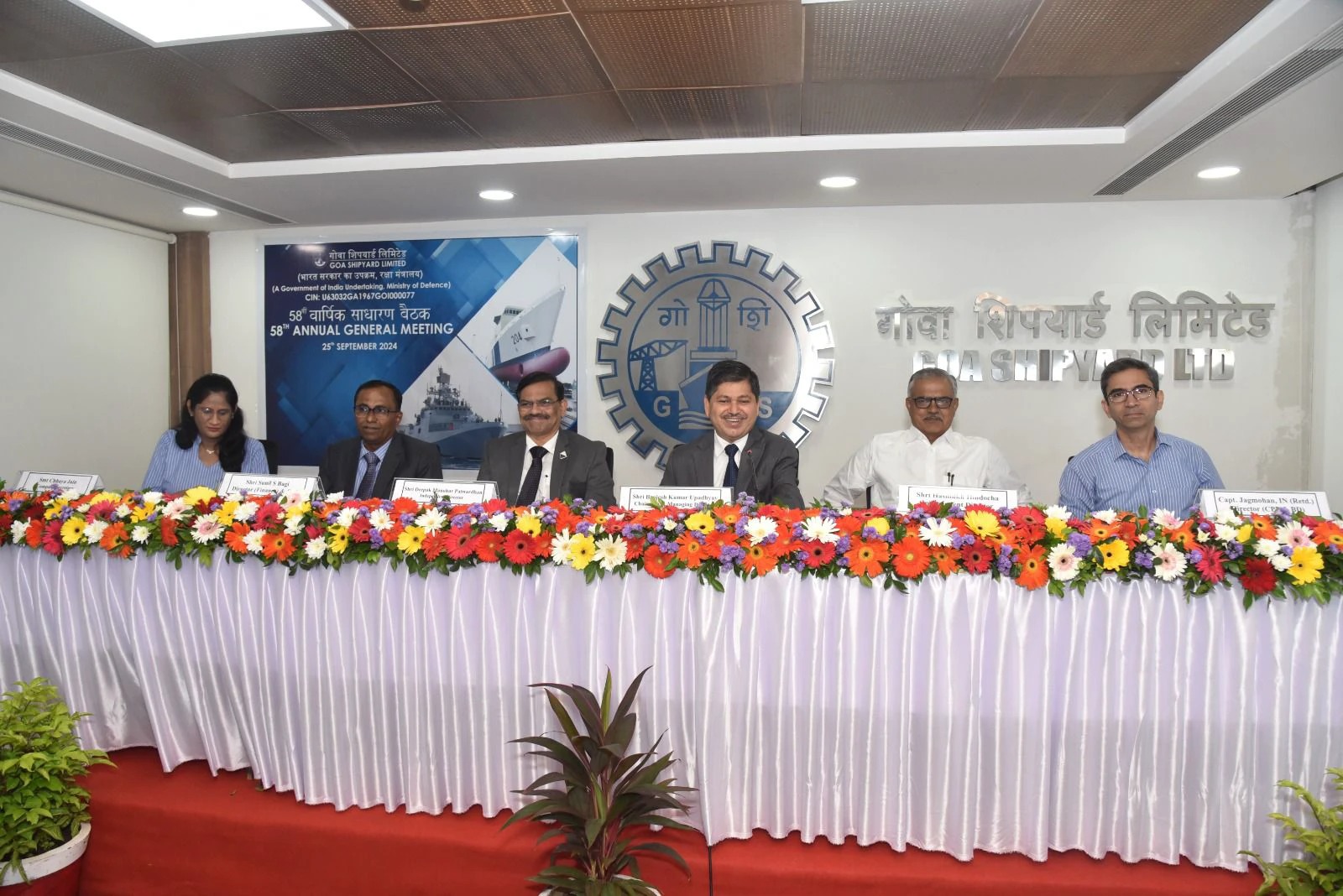 गोवा शिपयार्ड कंपनीची ५८ वी वार्षिक सभा कंपनीच्या गोव्यातील कार्यालयात अध्यक्ष तथा व्यवस्थापकीय संचालक ब्रिजेशकुमार उपाध्याय यांच्या अध्यक्षतेखाली पार पडली. बहुसंख्य सभासद यावेळी उपस्थित होते. सन २०२३-२४ चा अहवाल सभेने मंजूर केला. त्या आर्थिक वर्षात कंपनीचा एकूण महसूल २०९० कोटी रुपये होता. गतवर्षीच्या तुलनेत यावर्षीची महसुलातील वाढ १०० टक्के आहे. कंपनीचा करपूर्व नफा ३६४.६३ कोटी रुपये, तर करानंतरचा नफा २७१.३२ कोटी रुपये होता. कंपनीच्या नफ्यात लक्षणीय ७६ टक्के वाढ झाली आहे. कंपनीचे व्हॅल्यू ऑफ प्रॉडक्शन १४८७.४२ कोटी झाले आहे. गतवर्षी हे मूल्य ५०९.३४ कोटी होते. उत्पादनाच्या मूल्यातील ही वाढ कंपनीच्या प्रॉडक्शन ॲक्टिव्हिटीमधील गतिमानता दर्शवते.