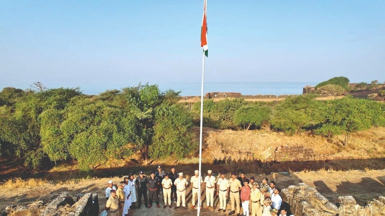 दापोली : चारशे वर्षे जुना हर्णे किल्ला आजही छत्रपती शिवाजी महाराजांच्या पराक्रमाची साक्ष देत उभा आहे. 26 जानेवारी म्हणजेच प्रजासत्ताक दिनी हर्णे सुवर्णदुर्ग किल्ल्यावर तिरंग्याला मानवंदना देण्यात आली. इतिहासात पहिल्यांदाच गडावर ध्वजारोहण केल्याने दापोली तालुक्याचा ऊर अभिमानाने भरून आला आहे, तर शासनाने घेतलेल्या निर्णयाचे सर्वत्र कौतुक होत आहे.