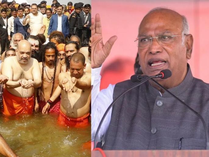 नवी दिल्ली : भाजप नेत्यांमध्ये गंगेत डुबकी मारण्याची स्पर्धा सुरू आहे. पण गंगेत डुबकी मारून गरिबी दूर होणार नाही. मला कोणाची भावना दुखावायची नाही, असे म्हणत काँग्रेसचे राष्ट्रीय अध्यक्ष मल्लिकार्जुन खर्गे यांनी भाजप नेत्यांच्या महाकुंभ मेळ्यातील स्नानावरून भाष्य केले आहे.