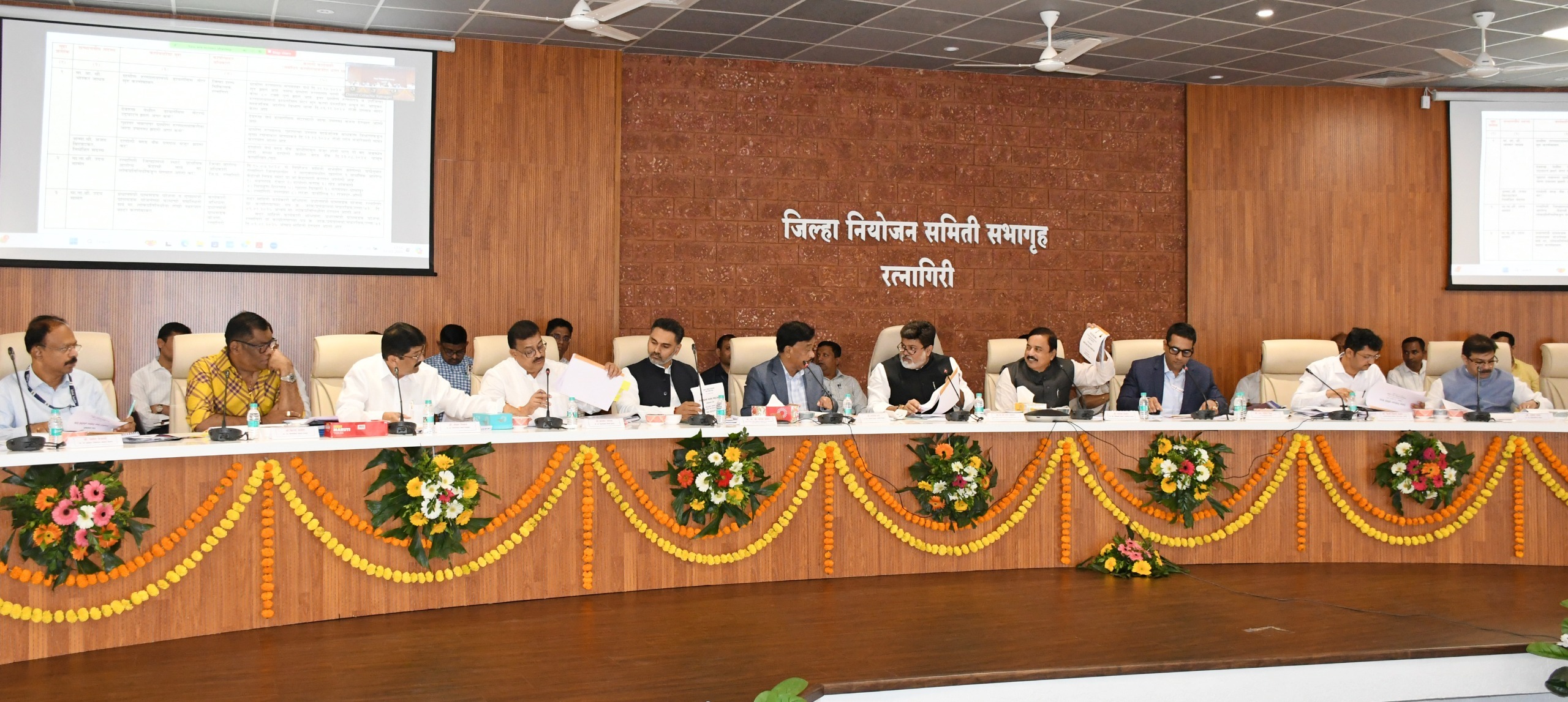 जिल्हा नियोजन समितीच्या सभागृहात पालकमंत्री श्री. सामंत यांच्या अध्यक्षतेखाली बैठक झाली. गृहराज्यमंत्री योगेश कदम, खासदार सुनिल तटकरे, खासदार नारायण राणे, आमदार प्रसाद लाड,आमदार भास्कर जाधव, आमदार शेखर निकम, आमदार किरण सामंत, जिल्हाधिकारी एम देवेंदर सिंह, मुख्य कार्यकारी अधिकारी कीर्ती किरण पुजार आदी उपस्थित होते.
