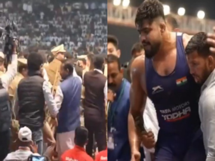 शिवराज राक्षे याने कुस्ती आखाड्यात आक्रमक पवित्रा घेतल्यानंतर एकच गोंधळ उडाला. आयोजक कार्यकर्ते व पोलिसांनी आखाड्याकडे धाव घेतली.