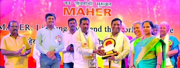 रत्नागिरी : या वर्षी माहेर संस्थेचा २८ वा वर्धापन दिन माहेर वात्सल्यधाम, आवळवाडी, पुणे येथे नुकताच पार पडला. २८ व्या वर्धापन दिनानिमित्त माहेर संस्था अंतर्गत उत्कृष्ट सामाजिक कार्यकर्ता म्हणून माहेर संस्था रत्नागिरीचे प्रकल्प प्रमुख, अधीक्षक व सामाजिक कार्यकर्ते, सुनील कांबळे यांचा गौरव शाल, स्मृतीचिन्ह व रोख रक्कम देऊन, श्री. बापूसाहेब पठारे आमदार वडगाव शेरी, पुणे व माहेर संस्थेच्या संस्थापिका, संचालिका सि. लुसी कुरियन दीदी, बाल कल्याण समिती पुणे सदस्य, आनंद शिंदे यांच्या हस्ते करण्यात आला.