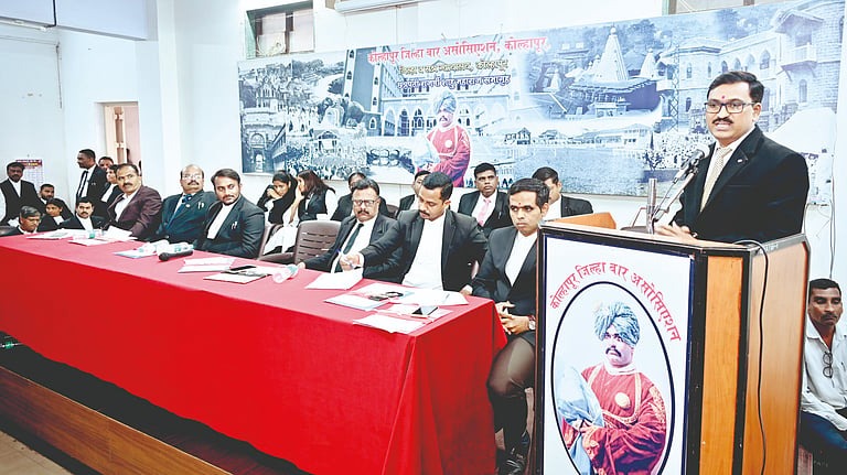 कोल्हापूर ः चार दशकाहून अधिक काळ प्रलंबित असलेल्या मुंबई उच्च न्यायालयाच्या कोल्हापूर खंडपीठ स्थापनेसाठी शासन आणि न्यायव्यवस्थेचे लक्ष वेधण्यासाठी 18 फेब्रुवारीला कोल्हापुरात जिल्हाधिकारी कार्यालयावर भव्य लक्षवेधी महारॅली काढण्याचा एकमुखी निर्णय कोल्हापूर जिल्हा बार असोसिएशनच्या सर्वसाधारण सभेत गुरुवारी घेण्यात आला. बैठकीला जिल्ह्यातील सर्व तालुक्यांचे बार असोसिएशन अध्यक्ष व पदाधिकारी मोठ्या संख्येने उपस्थित होते. खंडपीठाच्या मागणीसाठी भविष्यात आंदोलनाची व्याप्ती वाढविण्याचा निर्धारही यावेळी करण्यात आला.