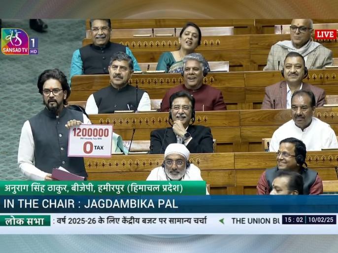 संसदेत बोलताना अनुराग ठाकूर यांनी एक छोटे पोस्टर दाखवले. त्यावर, १२ लाख रुपयांपर्यंतच्या उत्पन्नावर ‘०’ कर, असे लिहिलेले होते. ते म्हणाले की काँग्रेसला कदाचित हे ‘शून्य’ आवडणार नसेल. पण यामुळे कोट्यवधी सामान्य जनतेच्या चेहऱ्यावर आनंद आला आहे. यावेळी राहुल गांधी यांच्या एका मीमचा उल्लेख करत ठाकूर म्हणाले, राहुलजी, जरा हे शून्य चेक करा. त्या मीममध्ये राहुल गांधींना फ्यूअल स्टेशन अटेंडन्ट म्हणून दाखवण्यात आले आहे. ते ड्रायव्हरला मीटरमध्ये ‘शून्य’ बघायला सांगत आहेत?