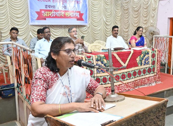 रत्नागिरी : भारत शिक्षण मंडळाच्या पटवर्धन हायस्कूलतर्फे दहावीच्या विद्यार्थ्यांचा आशीर्वाद समारंभ उत्साहात झाला. गुरुकृपा मंगल कार्यालयात झालेल्या कार्यक्रमाच्या अध्यक्षस्थानी मुख्याध्यापिका सौ. जानकी घाटविलकर आणि प्रमुख अतिथी म्हणून संस्थेचे पदाधिकारी श्रीराम भावे आणि माजी मुख्याध्यापक विजय वाघमारे उपस्थित होते.