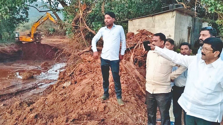 आरवली ः माखजन बाजारपेठ ते गडनदी विसर्जन घाट नदी पात्रातील गाळ काढण्याचे काम सध्या सुरू आहे. माखजन बाजारपेठ येथे आ. शेखर निकम यांनी भेट देवून गाळ काढण्याच्या कामाची पाहणी केली.