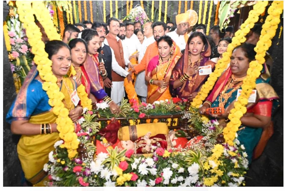 देवेंद्र फडणवीस, एकनाथ शिंदे आणि अजित पवार यांच्याहस्ते शिवजन्माचा पाळणा जोजावण्यात आला.