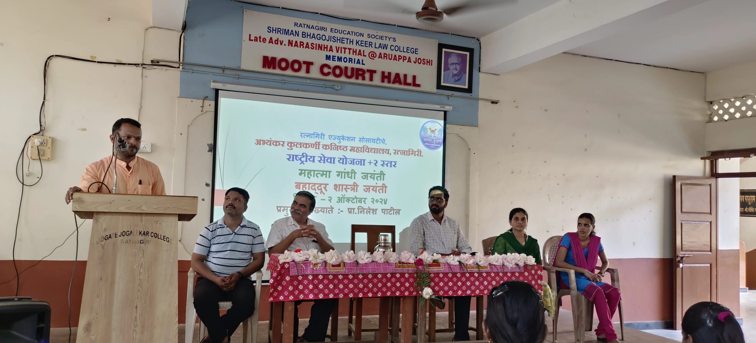 यावेळी व्यासपीठावर पर्यवेक्षक प्रा. विद्याधर केळकर, कार्यक्रमाधिकारी प्रा निनाद तेंडुलकर, प्रा. स्मिता पाथरे, प्रा. अभिजित भिडे, प्रा. स्नेहा बाणे उपस्थित होते. एनएसएसच्या विद्यार्थ्यांनी महाविद्यालयाच्या परिसरामध्ये एक तास स्वच्छता व श्रमदान केले.