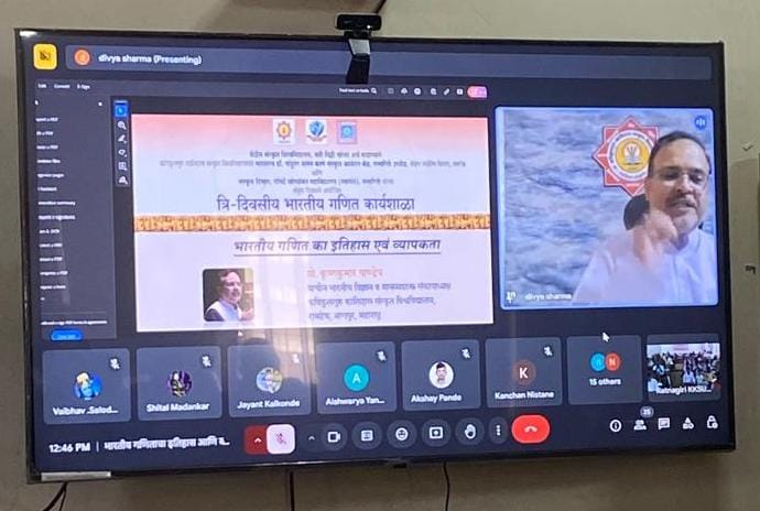डॉ. कृष्णकुमार पांडेय यांनी भारतीय गणिताचा इतिहास आणि व्याप्ती या विषयावर मार्गदर्शन केले. ते म्हणाले की, वेदांमध्ये आधीपासून गणिताचा संबंध दिसून येतो. शिवाय संख्यांचा उल्लेख आढळतो. यावेळी त्यांनी पायथागोरस प्रमेय, पाय संकल्पना, विविध प्राचीन ग्रंथात असलेली गणितीय सूत्रांबाबत माहिती दिली.