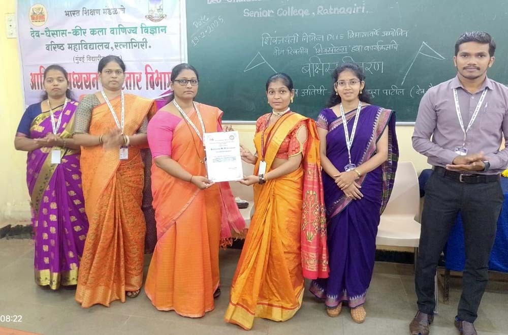 रत्नागिरी : भारत शिक्षण मंडळाच्या देव, घैसास, कीर, वरिष्ठ महाविद्यालयामध्ये शिवजयंतीनिमित्त आजीवन अध्ययन व विस्तार विभागाअंतर्गत तीन दिवसीय शिवसोहळा कार्यक्रम अत्यंत उत्साहात साजरा करण्यात आला.