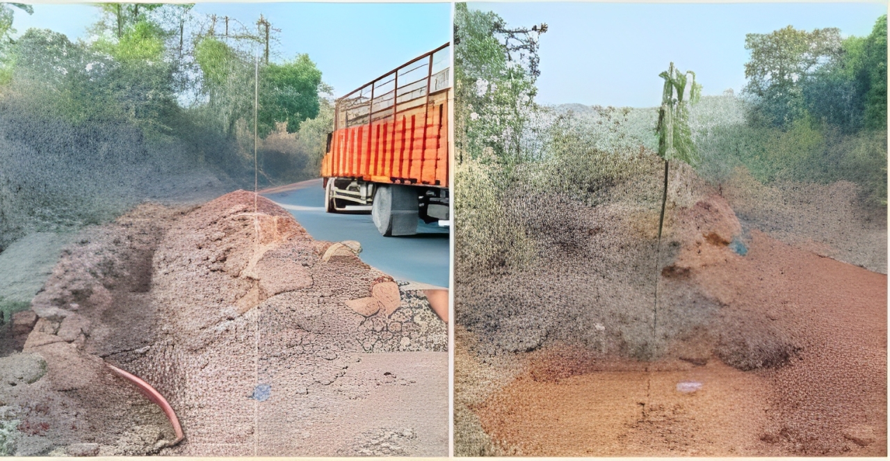 संगमेश्वर-देवरूख मार्गावर एका खासगी कंपनीने स्त्याच्या बाजूने केबल टाकताना संपूर्ण बाजूपट्टीची दुर्दशा करून टाकली आहे. अनेक ठिकाणी गाईडस्टोन उखडून टाकलेले आहेत. रस्ता आणि बाजूपट्टीमध्ये उंची निर्माण झाल्यामुळे अपघाताची शक्यता आहे. पावसाळ्यात बाजूपट्टी खचण्याचा धोका असतानाही सार्वजनिक बांधकाम विभाग यावर कोणतीही कार्यवाही करत नसल्याने तीव्र नाराजी व्यक्त केली जात आहे. याबाबत सार्वजनिक बांधकाम विभाग देवरूखचे शाखा अभियंता बुर्गे यांनी प्रत्येक पाच किमीचा भाग रोलर फिरवून समपातळीत करण्यात येणार असल्याचे सांगितले होते; मात्र अद्यापही रोलर फिरवणे सोडाच, केबल टाकताना उखडलेले गाईडस्टोनही बसवण्यात आलेले नाहीत.