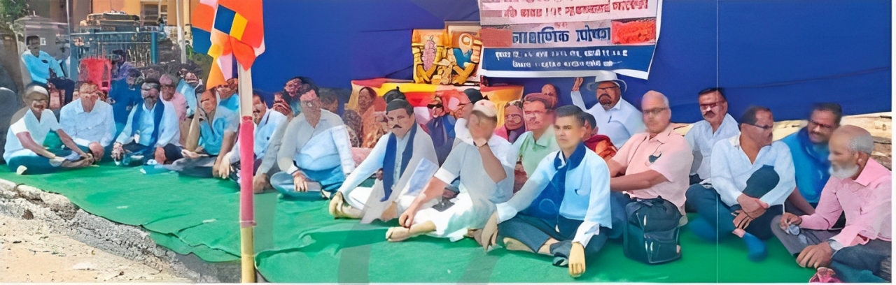 दापोली : बुद्धगया येथील महाबोधी बुद्धविहार हे बौद्धांचे असून, त्यावर पुजाऱ्यांनी १९४९ च्या मंदिर कायद्यानुसार कब्जा केला आहे. या देशातील बौद्धांची विरासत कायम टिकून ठेवण्यासाठी याबाबत चाललेल्या संघर्षाला पाठिंबा देण्यासाठी बौद्धजन सेवासंघ मुंबई व तालुका दापोली मंडणगड, भारतीय बौद्ध महासभा दापोली व बौद्धजन पंचायत समिती यांच्या नेतृत्वाखाली दापोलीच्या तहसील कार्यालयासमोर लाक्षणिक उपोषण करण्यात आले.