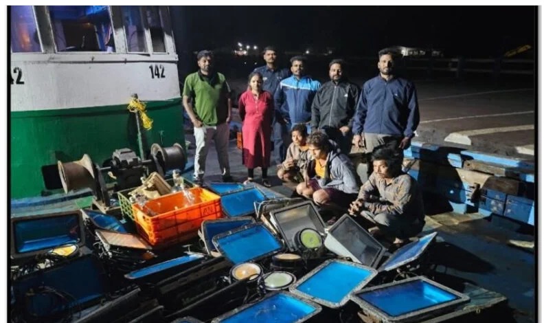 दि. 7/03/2025 रोजी रात्री सुमारास जयगड समोर 17°20.10.5N 72°59.02.4E मत्स्यव्यवसाय विभागाचे अंमलबजावणी अधिकारी श्रीम. स्मितल कांबळे, सहाय्यक मत्स्यव्यवसाय विकास अधिकारी (परवाना अधिकारी, जयगड) व श्री. स्वप्निल चव्हाण, सहाय्यक मत्स्यव्यवसाय विकास अधिकारी (परवाना अधिकारी, गुहागर) हे नियमित गस्त घालत होते. यावेळी राज्याच्या जलधी क्षेत्रासाठी परवाना असलेली मोहम्मद हनिफ हसनमिया तांडेल, रा. मिरकरवाडा, रत्नागिरी यांची नौका अल-हज-हसन- नों. क्र. IND-MH-4-MM-5701 द्वारे महाराष्ट्रातील जलधी क्षेत्रात जयगड समोर अनधिकृतरित्या एल.ई.डी. लाईट व्दारे मासेमारी करत असताना पकडले. या नौकेवर नौका तांडेलसह 3 खलाशी होते.