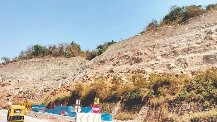 मुंबई-गोवा राष्ट्रीय महामार्गाच्या चौपदरीकरणाचे काम गेली कित्येक वर्षे सुरू आहे. विविध टप्प्यांत काही कामे रखडली आहेत. त्यात परशुराम घाटातील धोकादायक स्थिती कायम चर्चेत राहिली आहे. या घाटात एका बाजूला २२ मीटर उंचीच्या दरडीचा भाग असल्याने या ठिकाणी पावसाळ्यात नियमित दुर्घटना घडत आहेत. प्रामुख्याने गेल्या दोन महिन्यांत वाहनांच्या अपघातांचे प्रमाण वाढले आहे, तर दुसऱ्या बाजूला भरावाच्या ठिकाणी रस्ता व संरक्षक भिंती कोसळण्याच्या घटना वाढल्या आहेत. त्यासाठी दरडीच्या भागात लोखंडी जाळीच्या माध्यमातून उपाययोजना केल्या जात आहेत. त्यासाठी जागोजागी खडकात व दरडीच्या भागात आठ ड्रील मशिनच्या माध्यमातून लोखंडी सळ्या घुसवल्या जात आहेत आणि त्यावर जाळी बसवली जात आहे.
