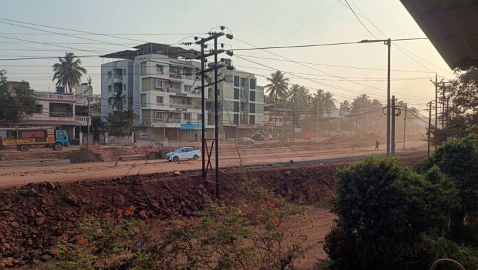 रत्नागिरी : रत्नागिरीतील मिऱ्या-नागपूर महामार्गाचे काम सध्या युद्धपातळीवर सुरू असले तरी, या कामाचा त्रास आता स्थानिक नागरिकांना सहन करावा लागत आहे. विशेषतः शहराजवळील साळवी स्टॉप ते चार रस्ता या भागात रस्त्याचे काम जोरात सुरू असून, त्यामुळे निर्माण झालेल्या धुळीच्या साम्राज्याने नागरिक हैराण झाले आहेत. या धुळीमुळे अनेकांना खोकला, दमा आणि श्वसनाचे आजार उद्भवत असल्याच्या तक्रारी वाढल्या असून, प्रशासनाने याकडे तातडीने लक्ष देण्याची मागणी होत आहे.
