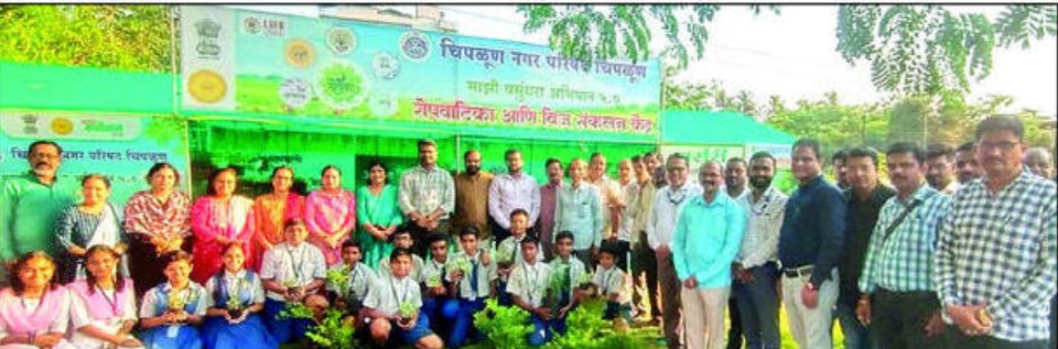 चिपळूण : चिपळूण नगर परिषदेचे प्रशासक तथा मुख्याधिकारी विशाल भोसले यांच्या मार्गदर्शनाखाली शासनाच्या माझी वसुंधरा अभियान अंतर्गत शहरातील नारायण तलाव येथे नुकतेच रोपवाटिका व बीज संकलन केंद्र उपक्रमाचा प्रारंभ करण्यात आला. यावेळी शालेय विद्यार्थ्यांसह शहरातील पर्यावरण, निसर्गप्रेमी व मान्यवर मोठ्या संख्येने उपस्थित होते.