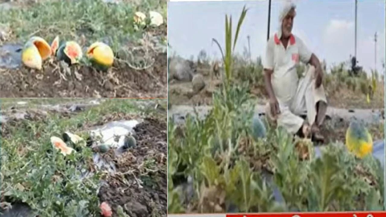 एकीकडे सोलापूर जिल्ह्यातील तापमान दिवासेंदिवस चाळीशीच्या पल्याड जातं असल्याने फळपिकांना तग धरण मुश्किल झालं होतं. त्यातच आता अशा अचानक आलेल्या पावसामुळे टरबूज बाग नेस्तनाबूत झाली आहे. बार्शी तालुक्यातील राळेरास मधील शेतकरी मोतीबुवा गोसावी यांची साधारण एक एकर टरबूजाला याचा आर्थिक फटका बसला आहे. यामुळे शेतकऱ्यांचे लाखोंचे नुकसान झाल्याचं चित्र सध्या सोलापूर जिल्ह्यात दिसून येत आहे.