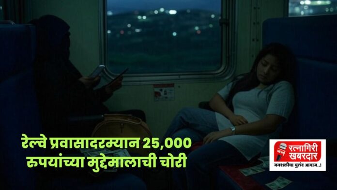 खेड, रत्नागिरी : खेड तालुक्यातील कळंबणी रेल्वे स्टेशन परिसरात ट्रेन क्रमांक 12133 मंगळूर जंक्शनमध्ये प्रवास करणाऱ्या एका महिलेच्या पर्समधून अज्ञात चोरट्याने 25,000 रुपये किमतीचा मुद्देमाल चोरल्याची घटना घडली आहे. ही घटना 3 मार्च 2025 रोजी पहाटे 3:10 वाजण्याच्या सुमारास घडली असून, याप्रकरणी 27 मार्च 2025 रोजी दुपारी 1:13 वाजता खेड पोलीस ठाण्यात गुन्हा दाखल करण्यात आला आहे.