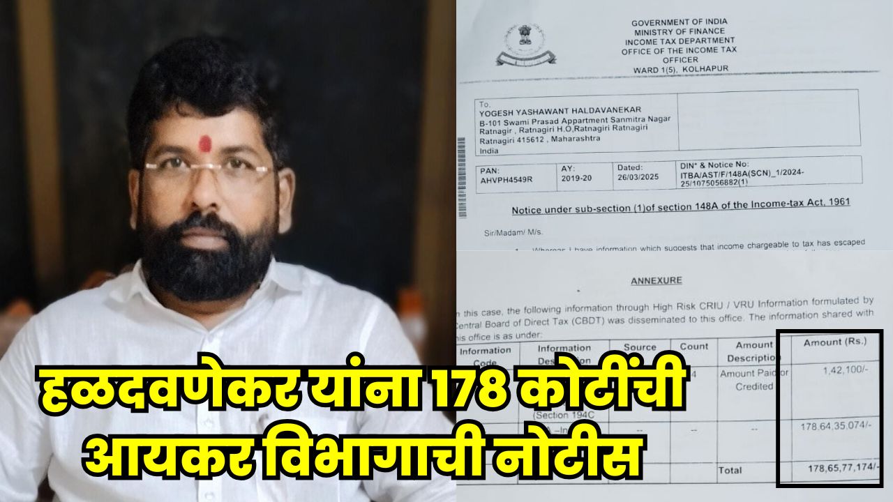 रत्नागिरी, ३ एप्रिल २०२५ : रत्नागिरी शहरातील योगेश हळदवणेकर यांना आयकर विभागाने तब्बल १७८ कोटी रुपयांच्या व्यवहारांप्रकरणी नोटीस बजावली आहे. या नोटीसीमुळे हळदवणेकर यांच्यासह संपूर्ण शहरात खळबळ उडाली आहे. विशेष म्हणजे, त्यांच्या पॅन आणि आधार कार्डाचा गैरवापर करून दिल्ली आणि उत्तर प्रदेशात दोन कंपन्या स्थापन करण्यात आल्याचा धक्कादायक प्रकार समोर आला आहे. या कंपन्यांच्या नावावर कोट्यवधी रुपयांचे व्यवहार झाल्याने आयकर विभागाने हळदवणेकर यांच्यावर कारवाईचा बडगा उगारला आहे.