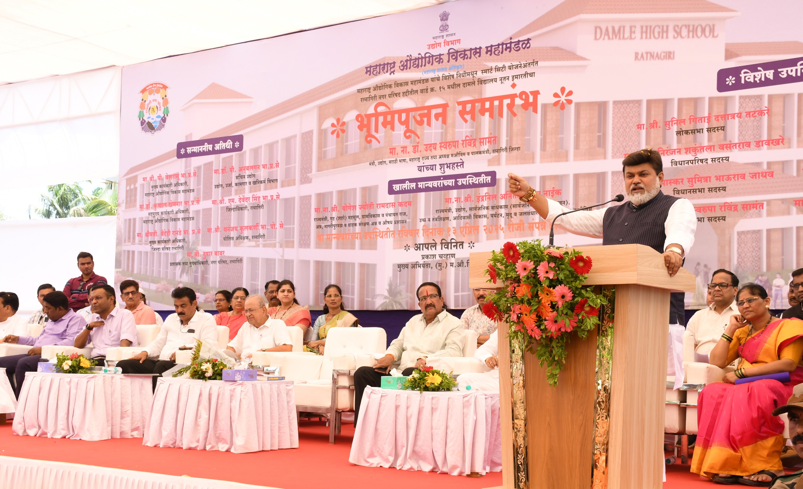 रत्नागिरी, दि. 13 एप्रिल 2025: रत्नागिरी शहर स्मार्ट सिटी योजनेअंतर्गत वेगाने बदलत आहे. याच बदलाचा एक महत्त्वाचा टप्पा म्हणून आज रत्नागिरी नगरपरिषदेच्या ऐतिहासिक दामले विद्यालयाच्या नूतन इमारतीचे भव्य भूमिपूजन पालकमंत्री डॉ. उदय सामंत यांच्या हस्ते पार पडले. एमआयडीसीच्या विशेष निधीतून 15 कोटी 38 लाख रुपये खर्चून उभारली जाणारी ही इमारत खासगी शाळांना मागे टाकणारी, अत्याधुनिक सुविधांनी युक्त असेल. “रत्नागिरी बदलतंय… बदललंय… येत्या दोन वर्षांत स्मार्ट सिटी म्हणून रत्नागिरी उभे राहील,” असे ठाम प्रतिपादन डॉ. सामंत यांनी यावेळी केले.
