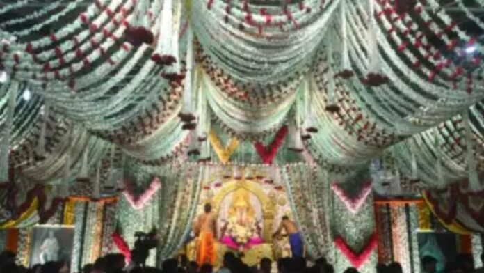 मोगऱ्याच्या 50 लाख फुलांसह लिली, झेंडू, जास्वंद, गुलाब, चाफा यासारख्या फुलांनी गाभा-यासह सभामंडपात आकर्षक सजावट करण्यात आली.