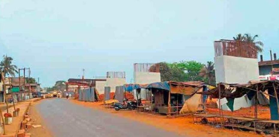 महामार्ग चौपदरीकरणामुळे गेली अनेक वर्षे वसलेल्या येथील बाजारपेठेचा चेहरामोहरा बदलला आहे. महामार्गासाठी जागा संपादित केल्यानंतर जुनी दुकाने, हॉटेल, टपऱ्या उचलण्यात आल्या आहेत. तिथे उड्डाणपूल बांधण्याचे काम सुरू असल्याने क्रेनसह अन्य साहित्य ठेवले आहे.