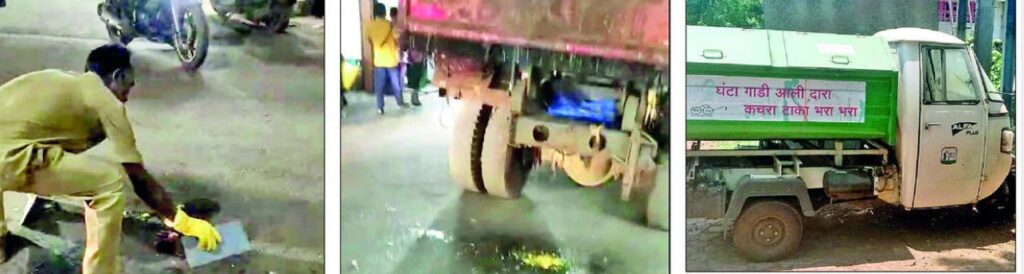 नगर परिषदेने मध्यंतरात कचरा गोळा करण्यासाठी शासनाच्या माध्यमातून सुस्थितीतील वाहने घेतले आहेत. तसेच खास ओला कचरा गोळा करण्यासाठी छोटी बंदिस्त वाहने देखील घेतली आहेत. मात्र, प्रत्यक्षात बाजारपेठेत ओला कचरा गोळा करण्यासाठी ही छोटे वाहने वापरण्याऐवजी सध्या अनेक ठिकाणी फाटलेला व गंजलेला व खराब पत्रा असलेली भंगार गाड़ी वापरली जात आहे. परिणामी ओल्या कचऱ्याला गळती लागून रस्त्यावर पडलेला कचरा गोळा करण्यासाठी सफाई कर्मचाऱ्याला पुन्हा काम करावे लागत आहे.