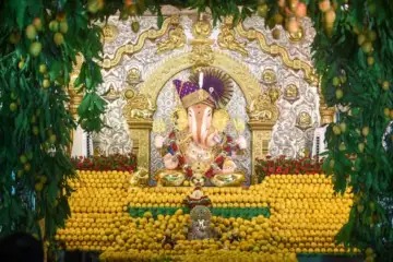 तर दुसरीकडे मंदिरावर देखील फुलांनी आंब्यांच्या प्रतिकृती साकारली आहे. प्रवेशद्वारापासून गाभाऱ्यापर्यंत फुलांनी केलेली सजावट अशा मनोहारी वातावरणात स्वराभिषेकातून अक्षयतृतीयेच्या निमित्ताने गणराया चरणी सेवा अर्पण करण्यात आली आहे.