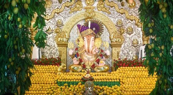 दरवर्षी प्रमाणे यंदा ही अक्षयतृतीयेच्या मंगलदिनी गणरायाभोवती आकर्षक आणि मनमोहक आंब्यांची आरास करण्यात आली असून हे दृश्य सऱ्यांचे लक्ष वेधून घेत आहे.