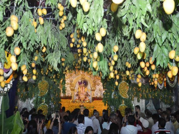 हि आंब्यांची आरास पाहण्याबरोबरच भाविकांनी पहाटे पासूनच गणरायाच्या दर्शनासाठी मोठी गर्दी केली होती.