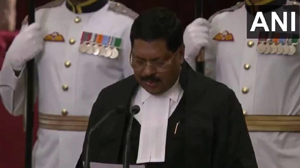 राष्ट्रपती द्रौपदी मुर्मू यांनी गवई यांना शपथ दिली.