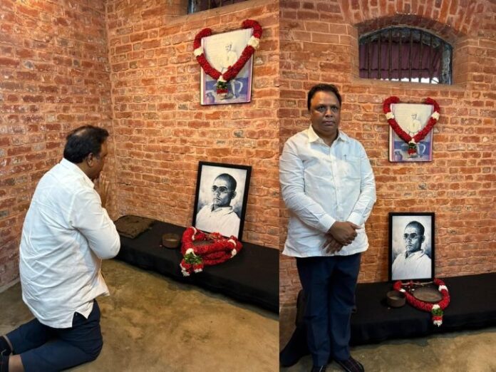 मंत्री आशिष शेलार अंदमान निकोबार दौऱ्यावर असता त्यांनी सेल्युलर जेल येथे जाऊन स्वातंत्र्यवीर विनायक दामोदर सावरकर यांच्या स्मृतींना अभिवादन केले. ज्या काळ कोठडीत सावरकरांना ठेवण्यात आले होते तिथे जाऊन आशिष शेलार नतमस्तक ही झाले. दरम्यान त्यांनी या दौऱ्यात अंदमान निकोबारचे मुख्य सचिव डॉ. चंद्र भूषण कुमार यांची भेट घेऊन सावरकर स्मारकाबाबतची महाराष्ट्र शासनाची भूमिका मांडली.
