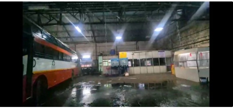 गेल्या काही दिवसांपासून मान्सूनपूर्व पावसाने जोर धरला आहे. सकाळपासून सुरू होणाऱ्या पावसामुळे नागरिकांची तारांबळ उडत आहे. तालुक्यात सर्वत्र कोसळणाऱ्या धुवाँधार पावसामुळे ठिकठिकाणी पाणी साचत असल्याचे चित्र आहे. मंगळवारी रात्री झालेल्या मुसळधार पावसाचा फटका चिपळूण आगाराला बसला. आगाराच्या विस्तारित बसस्थानकात स्वतंत्र यांत्रिकी कार्यशाळा विभाग आहे, जिथे स्थानिक आगारासह इतर ठिकाणच्या नादुरुस्त बसेस दुरुस्त केल्या जातात. याच विभागाच्या गळक्या छपरामुळे पावसाचे पाणी आत शिरले आणि सर्वत्र पाणीच पाणी झाले.