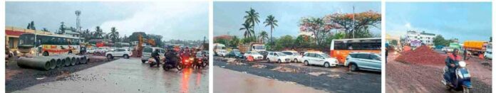 यामध्ये मोकाट गुरे फिरत असल्याने वाहतुकीत आणखीनच अडथळा बुधवारी सायंकाळी काँक्रीट केलेल्या रस्त्यावरून वाहतूक वळवण्यात आली मात्र तो रस्ताही खराब असल्याने तिथेही कोडी होत होती. या पय गोंधळामुळे वाहनचालकांची गैरसोय झाली. दिवसा या ठिकाणी पोलिस होते; परंतु प्रत्येकाला पुढे जाण्याची घाई असल्याने त्यांचाही नाईलाज होत होता. सायंकाळी साळवी स्टॉप येथे एसटी बसेस, खासगी बसेस प्रवाशांसाठी थांबतात. त्यामुळे वाहनांना अडथळा होतो. पावसामुळे वाहनचालकांची अधिक गैरसोय होत असून, सायंकाळच्या सुमारास कोंडी टाळण्यासाठी पोलिसांचे संख्याबळ वाढवणे आवश्यक आहे, अशी मागणी नागरिकांकडून केली जात आहे.