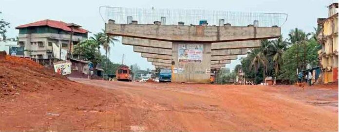 सळधार पावसात या ठिकाणाहून चालणेही अशक्य होत आहे. उड्डाणपुलाचे काम केव्हा पूर्ण करणार, असा प्रश्न नागरिकांसह प्रवाशांना पडलेला आहे.